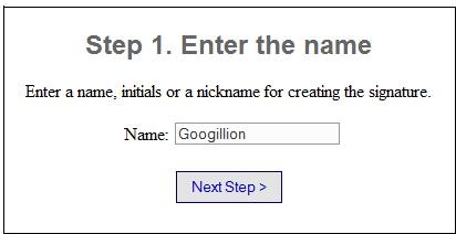 Enter your name or whatever you want to create a signature from. Click Next Step.