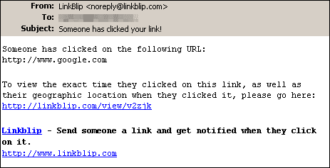 3. Now go to LinkBlip and fill out required information(see the screenshots below). With LinkBlip you send a link and get notified someone has clicked on it. Note that you put an other email address in the first field as in the second one anything on the URL you want(e.g. http://www.google.com) and press the button "OK". Now you’ll get a link something like this (http://lburl.com/xxxxx) from LinkBlip.